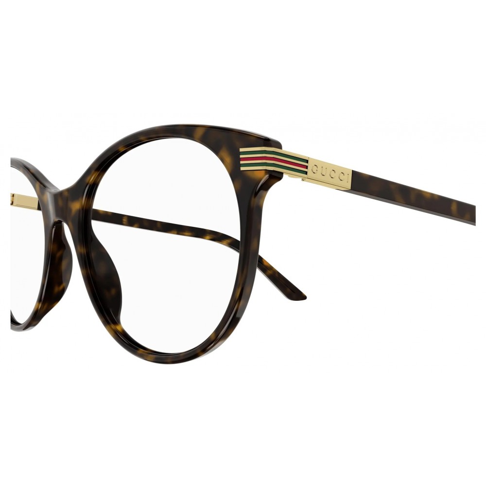 GG 1450O 002 to stylowa ramka dedykowana kobietom, które cenią sobie markę i design. Wykonana z wysokiej jakości materiału jest trwała oraz komfortowa w noszeniu. Jej okrągły kształt jest subtelny, kobiecy, nie przesadnie krzykliwy, co jest idealnym wyborem jeżeli szukasz oprawek stosunkowo uniwersalnych. Front nie jest ani masywny, ani ultracienki, zachowuje równowagę pomiędzy klasyką, a modnym akcentem. Całość utrzymana w kolorze ciepłego brązu z bursztynowym wzorem daje elegancki, mniej kontrastowy efekt niż czysta czerń, lepiej komponując się z naturalnymi tonami skóry i stylizacjami. Jeżeli lubisz marki premium oraz dodatki z charakterem to ten model Gucci spełni ten "luksusowy" warunek.