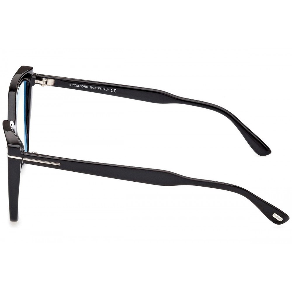 TF 5844-B 001 to klasyczny design z delikatnym pazurem, stworzony dla kobiet, które cenią sobie wyrafinowany styl i wysoką jakość wykonania. Oprawki mają pełną konstrukcję wykonaną z wysokiej jakości acetatu o czarnym, błyszczącym wykończeniu, które prezentuje się niezwykle elegancko, podkreślając indywidualny styl ich właścicielki. Kształt kociego oka unosi spojrzenie oraz dodaje twarzy subtelności i delikatności natomiast charakterystyczne, metalowe "T" na zausznikach podkreśla luksusowy styl marki. To uniwersalny symbol luksusu i estetyki, który wzbogaci każdą twoją stylizację.